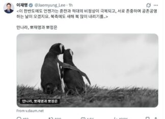 President Lee Jae Myung hopes for peace on the Korean Peninsula and shares a playful X post referencing camaraderie with North Korea.