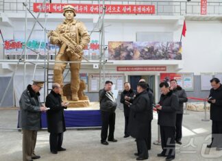Kim Jong-un emphasizes North Korean military 'heroism' while overseeing the statue project for Russian soldiers' memorial.